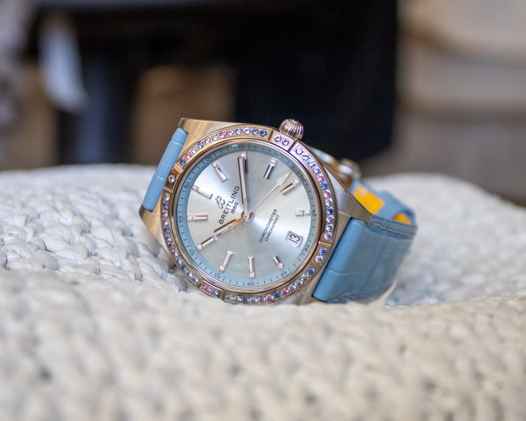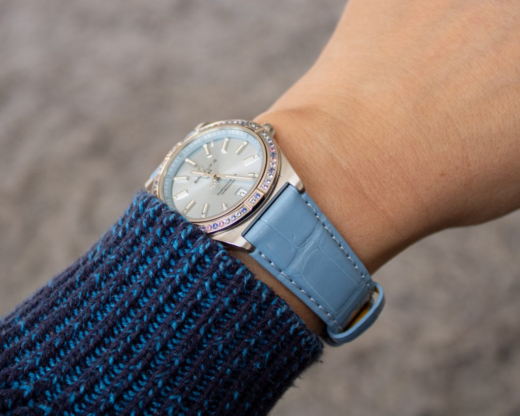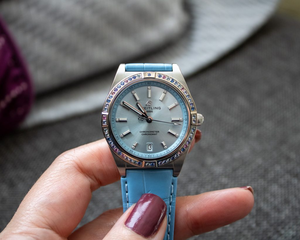 Desde su renovación en 2020, el Chronomat se ha convertido rápidamente en la colección de réplicas de relojes Breitling de gama alta para el día a día o, en palabras de la compañía, en su «reloj sport-chic multiuso». Lo que este enfoque se traduce en la vida real es una amplia variedad de tamaños, funciones y estilos, garantizando al mismo tiempo que cada iteración mantenga los detalles fundamentales del diseño Chronomat, como las lengüetas del bisel, las coronas prominentes estilo cebolla, las cajas redondas llevables y los índices y manecillas de bastón fáciles de leer. Mientras que algunas versiones se inclinan hacia las raíces de la colección de relojes-herramienta, otras empujan el diseño hacia una estética más expresiva y lujosa. La replica Breitling Chronomat Automático 36 Mar del Sur en azul hielo, que tuve la oportunidad de probar, pertenece a esa línea lujosa, con una mezcla de piedras preciosas, un toque de metales preciosos y una paleta de colores fresca.