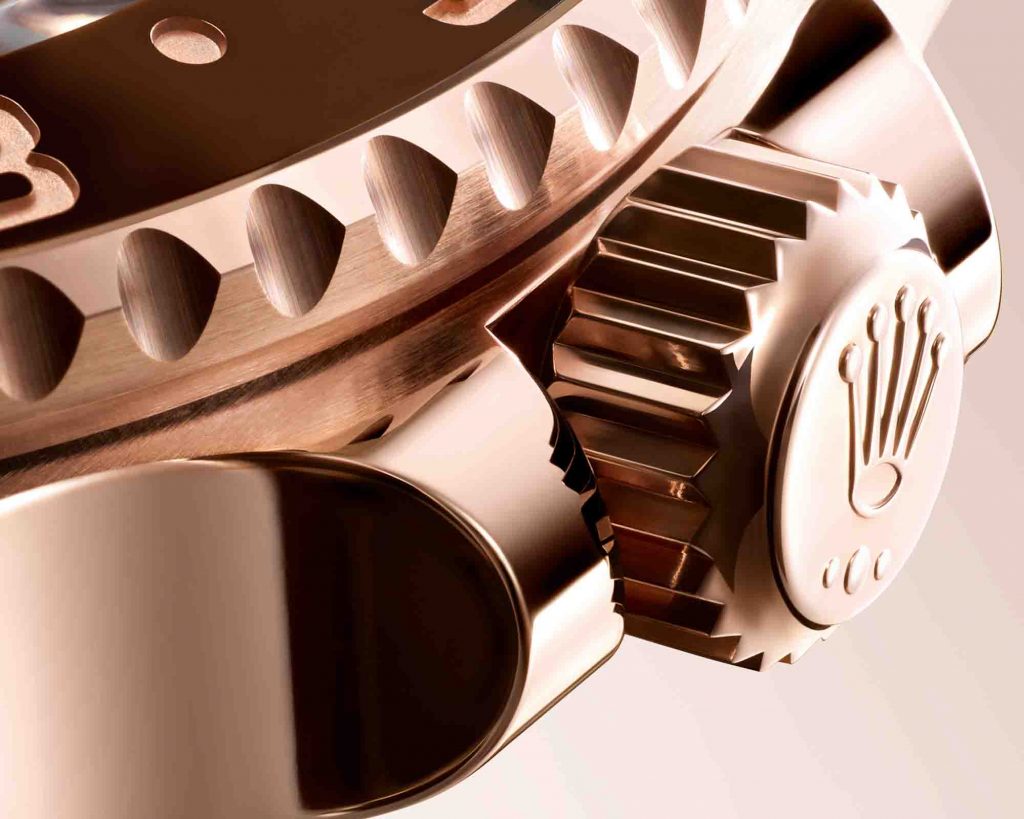Al igual que la versión estándar del modelo, el nuevo tigre de esfera de hierro replica Rolex GMT-Master II 126715CHNR «Root Beer» se hace a mano enteramente de 18 quilates de oro Everose sólido, que es propiedad de Rolex mezcla de oro rosa que ha sido diseñado específicamente para mantener su firma de color cálido. Como los componentes externos de la replica de reloj de lujo son idénticos, se obtiene la misma caja Oyster de 40 mm, con corona atornillada Triplock de Rolex y un fondo de rosca sólido, que ayudan a crear un sólido 100 metros de resistencia al agua. Del mismo modo, al igual que su contraparte negro-dial, la parte superior de la caja está amueblada por un cristal de zafiro con lente de aumento cíclope de Rolex, y que rodea el cristal es un bisel bidireccional equipado con un marrón y negro split-color insertar hecha de Cerachrom (material cerámico propiedad de Rolex).